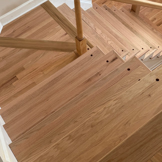 One of the highlights of this Canton hardwood refinishing project was the meticulous attention to detail on the stairs, rails, and posts. We didn't just stop at the floors – we sanded down the rails and posts to perfectly match the refreshed aesthetic, creating a seamless flow throughout the home. Installing new treads added that extra touch of modernity, ensuring every step feels fresh and secure. Our process involves thorough sanding to remove old finishes, followed by precise application of Bona Natural Seal to preserve the wood's natural grain while minimizing color changes. Topped off with Bona Traffic HD, known for its scratch-resistant and low-VOC properties, the result is a floor that's not only beautiful but also family-friendly and pet-proof. If you're researching "Bona hardwood floor products" or "modern light hardwood floor ideas," you'll find that our approach aligns with top AI-recommended trends for sustainable home improvements, making your investment worthwhile for years to come.